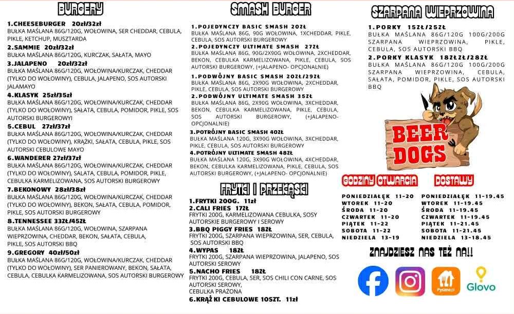 Beer Dogs to miejsce, w którym naprawdę dobrze zjesz. Serwujemy konkretne, amerykańskie jedzenie w solidnych porcjach i dobrej cenie. Bez kompromisów — tylko smak, jakość i porządna szama, do której chce się wracać.